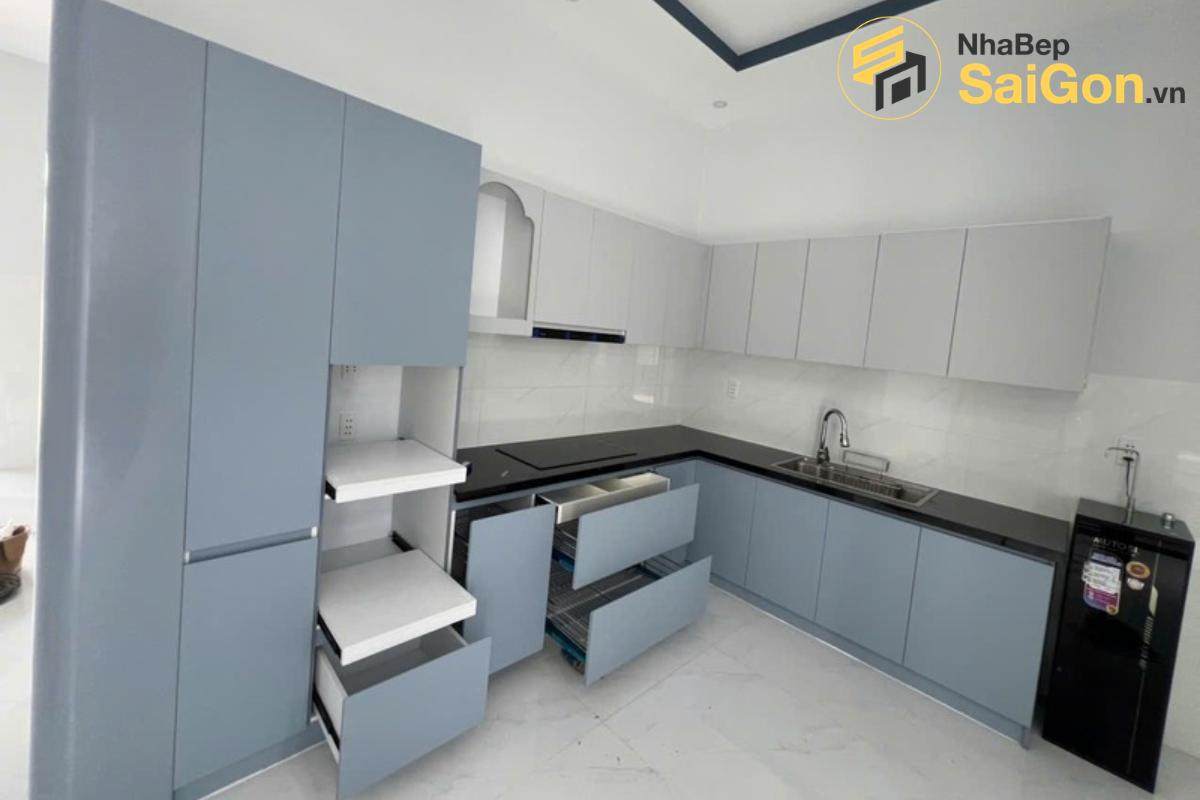 Việc lựa chọn Tủ bếp chữ L PVC cho công trình nhà chị My không phải là ngẫu nhiên. Chất liệu PVC ngày càng khẳng định vị thế của mình trong ngành nội thất nhờ những ưu điểm vượt trội: