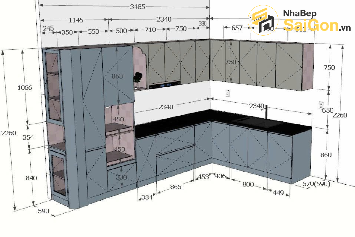 Khu vực bếp của nhà chị My có ưu điểm là sự vuông vắn, thuận lợi cho việc bố trí theo hình chữ L. Đội ngũ thiết kế của chúng tôi đã phối hợp chặt chẽ với chị để đưa ra phương án tối ưu nhất, đảm bảo công năng sử dụng và tính thẩm mỹ: