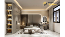 Tủ quần áo trong Combo phòng ngủ PN002 được thiết kế với dung tích lưu trữ lớn, phân chia khoa học thành các ngăn kéo, ngăn treo và kệ để quần áo, phụ kiện, chăn màn. Cửa tủ có thể là dạng cánh lùa (sliding doors) hoặc cánh mở truyền thống, tùy thuộc vào không gian và sở thích của gia chủ. Các ray trượt và bản lề cao cấp đảm bảo việc đóng mở diễn ra nhẹ nhàng, êm ái. Thiết kế của tủ quần áo hài hòa với phong cách chung của bộ combo, tạo nên một tổng thể liền mạch và ấn tượng.