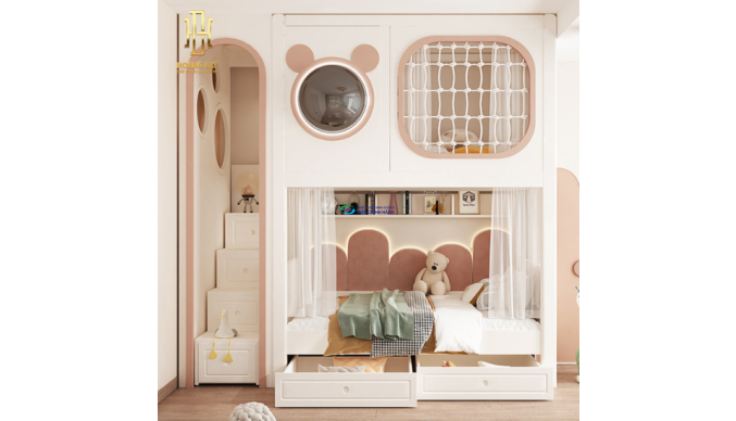 Không chỉ dừng lại ở chức năng ngủ nghỉ, giường tầng thông minh Hoàng Đạt GT018 còn tích hợp nhiều tiện ích khác. Tùy thuộc vào phiên bản, sản phẩm có thể đi kèm với hộc tủ lưu trữ thông minh, bàn học gấp gọn, kệ sách nhỏ xinh, hay thậm chí là cầu trượt vui nhộn cho bé. Sự đa năng này giúp biến chiếc giường không chỉ là nơi để ngủ mà còn là một "trung tâm" sinh hoạt thu nhỏ, đáp ứng mọi nhu cầu của người sử dụng một cách hiệu quả.