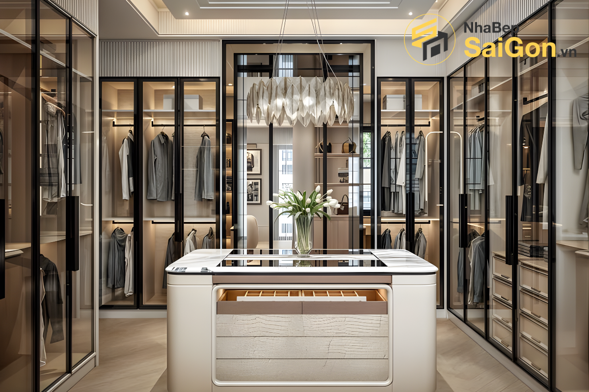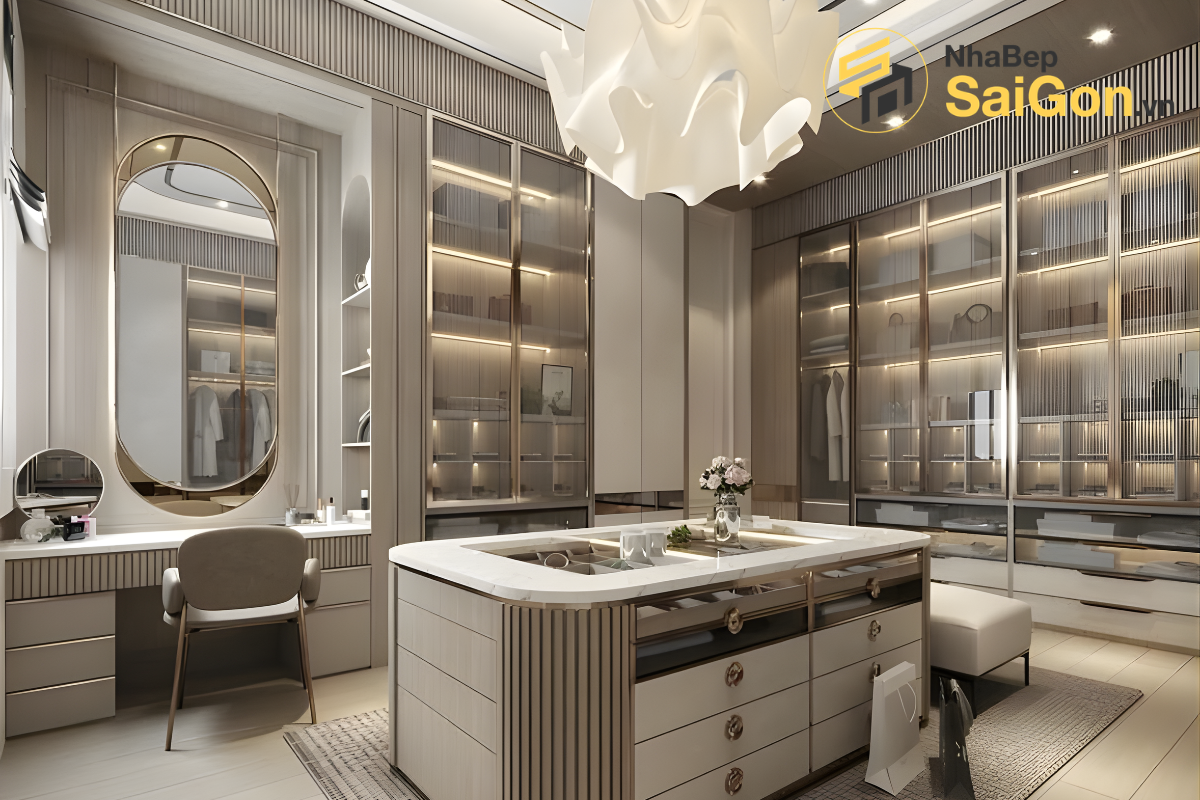 Đây là ứng dụng phổ biến nhất của PTD004, đặc biệt trong các căn biệt thự, nhà phố hoặc căn hộ cao cấp có diện tích rộng rãi. Một phòng thay đồ riêng biệt mang đến sự tiện nghi tối đa, giúp gia chủ sắp xếp và quản lý quần áo một cách khoa học, đồng thời tạo ra một không gian thư giãn, cá nhân hóa.