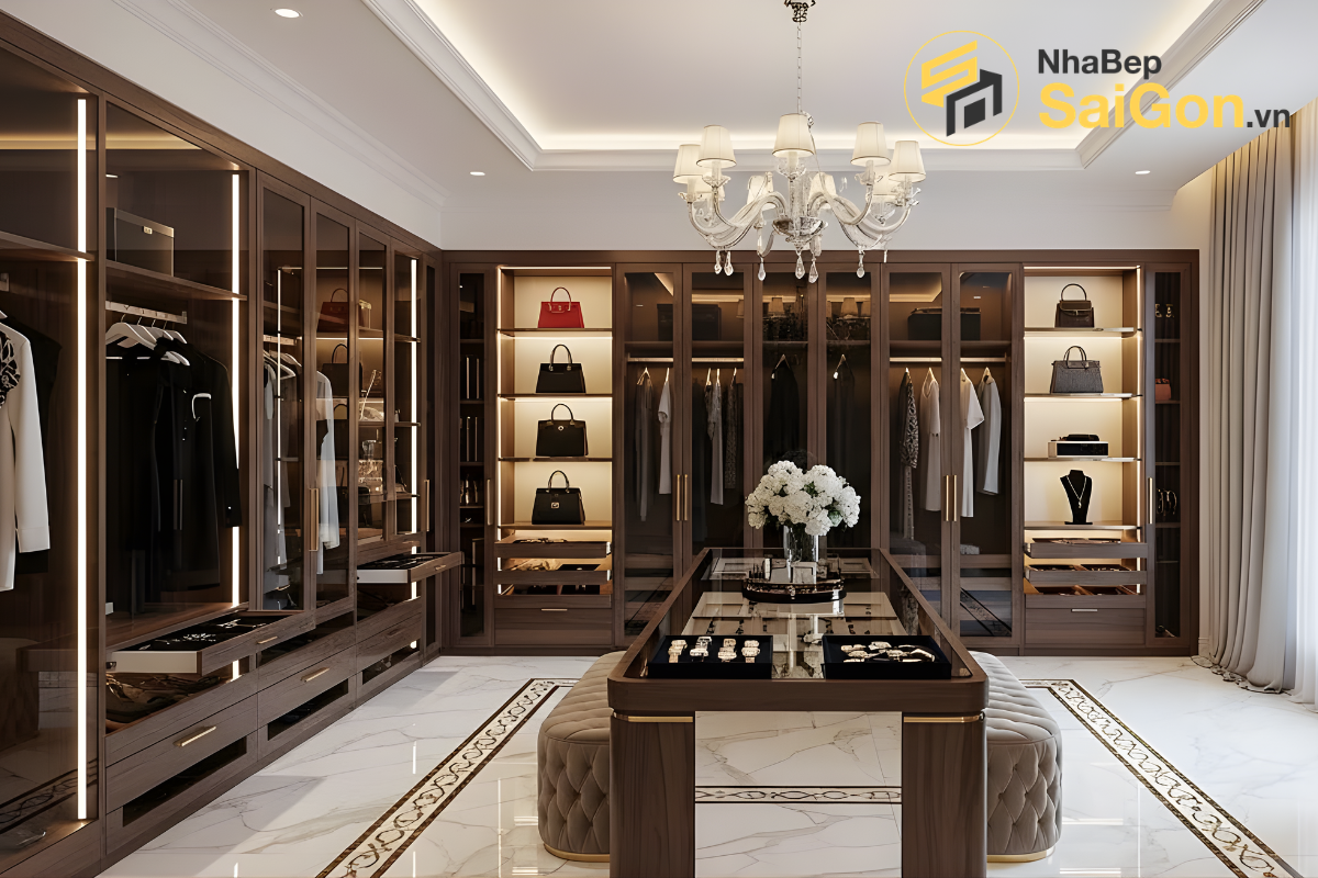 Việc có một không gian riêng biệt, được sắp xếp khoa học để thay đổi trang phục, trang điểm, làm tóc mang lại sự tiện nghi và thoải mái tối đa. Đây là nơi bạn có thể dành thời gian chăm sóc bản thân, thư giãn sau một ngày dài.