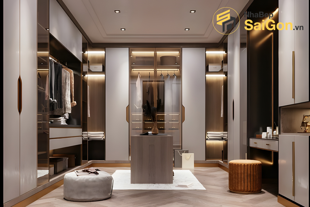 Phòng thay đồ là một không gian không thể thiếu trong ngôi nhà hiện đại, mang đến sự tiện nghi và đẳng cấp cho chủ nhân. PTD007 nổi bật như một giải pháp tối ưu, kết hợp giữa tính thẩm mỹ tinh tế và công năng sử dụng vượt trội, đáp ứng mọi nhu cầu về lưu trữ và trưng bày quần áo, phụ kiện một cách khoa học và sang trọng.