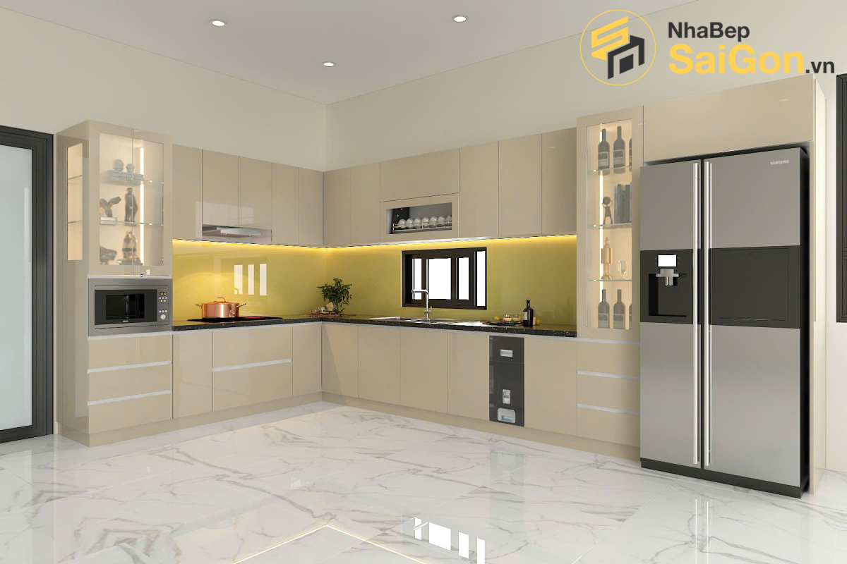 Tủ bếp chữ L - TBL015 với khả năng tận dụng hiệu quả góc nhìn, đang trở thành lựa chọn phổ biến, mang đến sự tiện nghi và sang trọng.