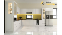 Với cấu trúc kéo dài theo hai bức tường, tủ bếp chữ L cung cấp một không gian lưu trữ dồi dào. Các ngăn tủ, hộc kéo được thiết kế thông minh, khoa học, giúp bạn dễ dàng sắp xếp, cất giữ xoong nồi, bát đĩa, thực phẩm và các vật dụng nhà bếp khác một cách ngăn nắp.