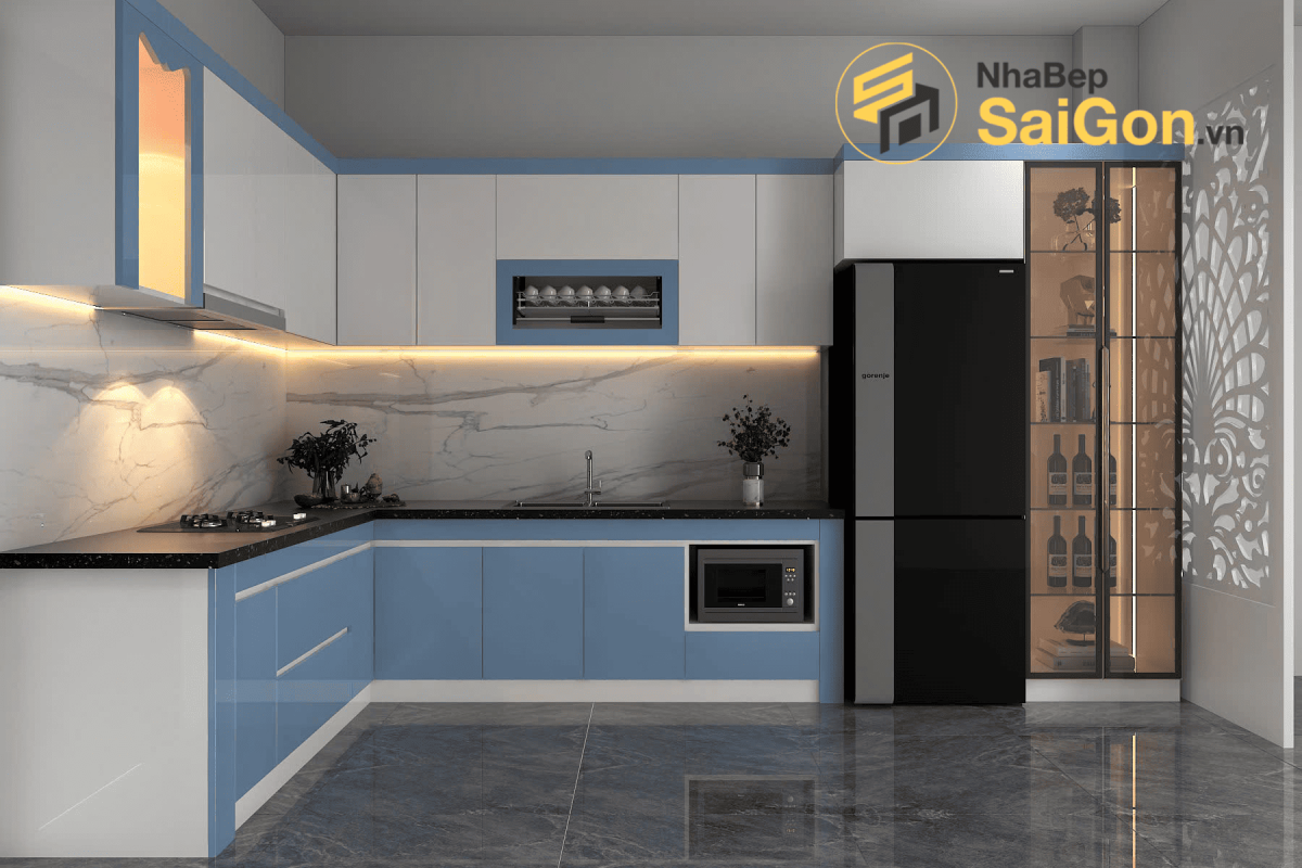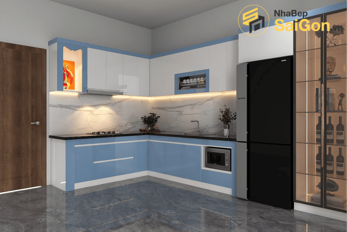 Mẫu tủ bếp chữ L - TBL023 mang lại cảm giác nhẹ nhàng, tươi mới và hiện đại cho không gian bếp. Sự phối hợp màu sắc hài hòa cùng các đường nét thiết kế tối giản giúp tổng thể căn bếp trở nên trẻ trung nhưng vẫn giữ được sự sang trọng cần thiết.