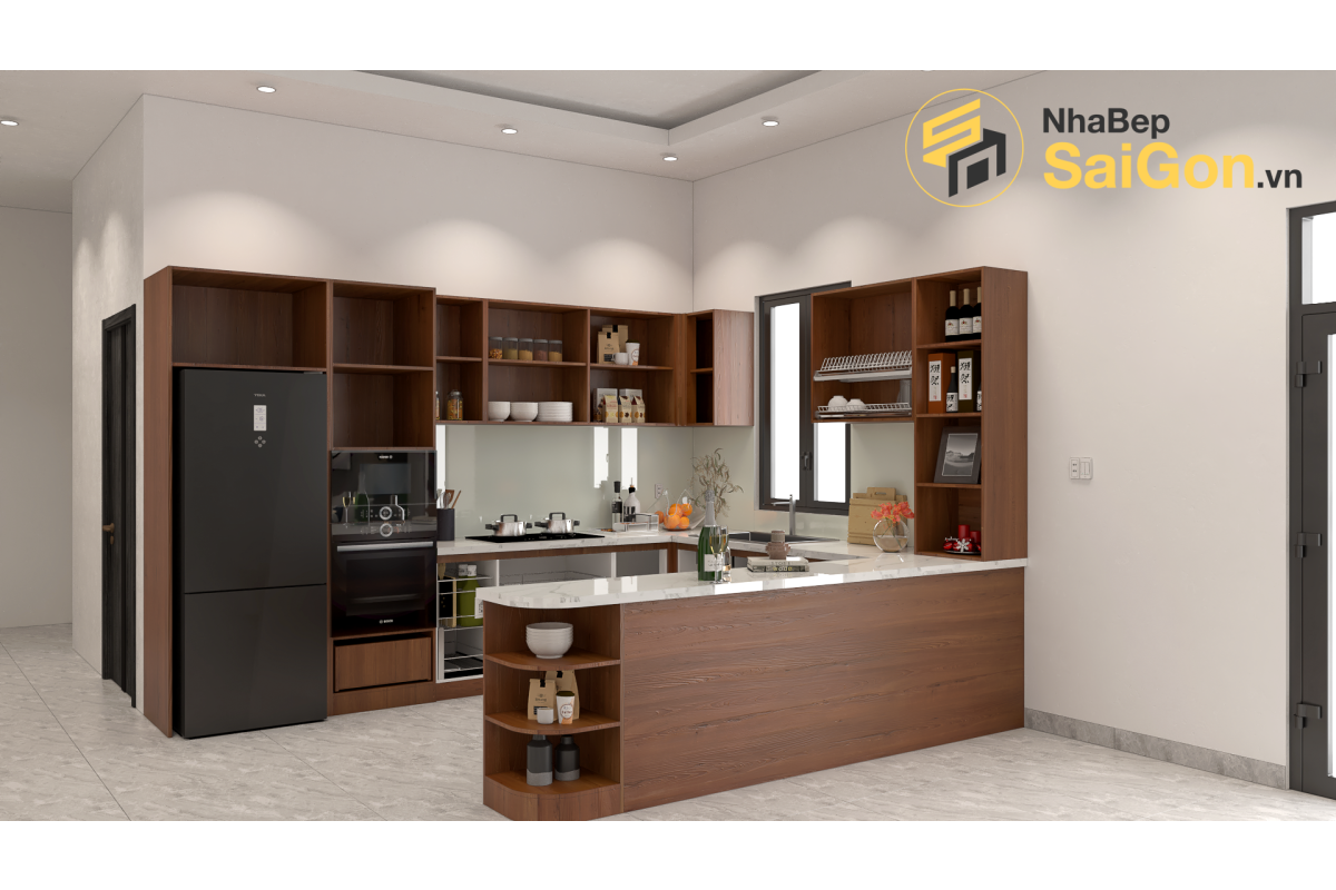 Tủ bếp chữ U – TBU006 là mẫu tủ bếp hiện đại được thiết kế theo bố cục chữ U kết hợp đảo bếp tiện nghi, mang đến không gian nấu nướng rộng rãi, khoa học và đầy tính thẩm mỹ. Thiết kế này giúp tối ưu diện tích sử dụng, tạo nên sự liên kết chặt chẽ giữa các khu vực nấu - rửa - chuẩn bị thực phẩm, đồng thời mang lại sự thuận tiện trong quá trình sử dụng hằng ngày.