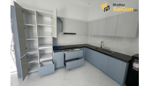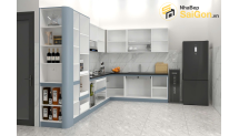 Khu vực bếp của nhà chị My có ưu điểm là sự vuông vắn, thuận lợi cho việc bố trí theo hình chữ L. Đội ngũ thiết kế của chúng tôi đã phối hợp chặt chẽ với chị để đưa ra phương án tối ưu nhất, đảm bảo công năng sử dụng và tính thẩm mỹ:
