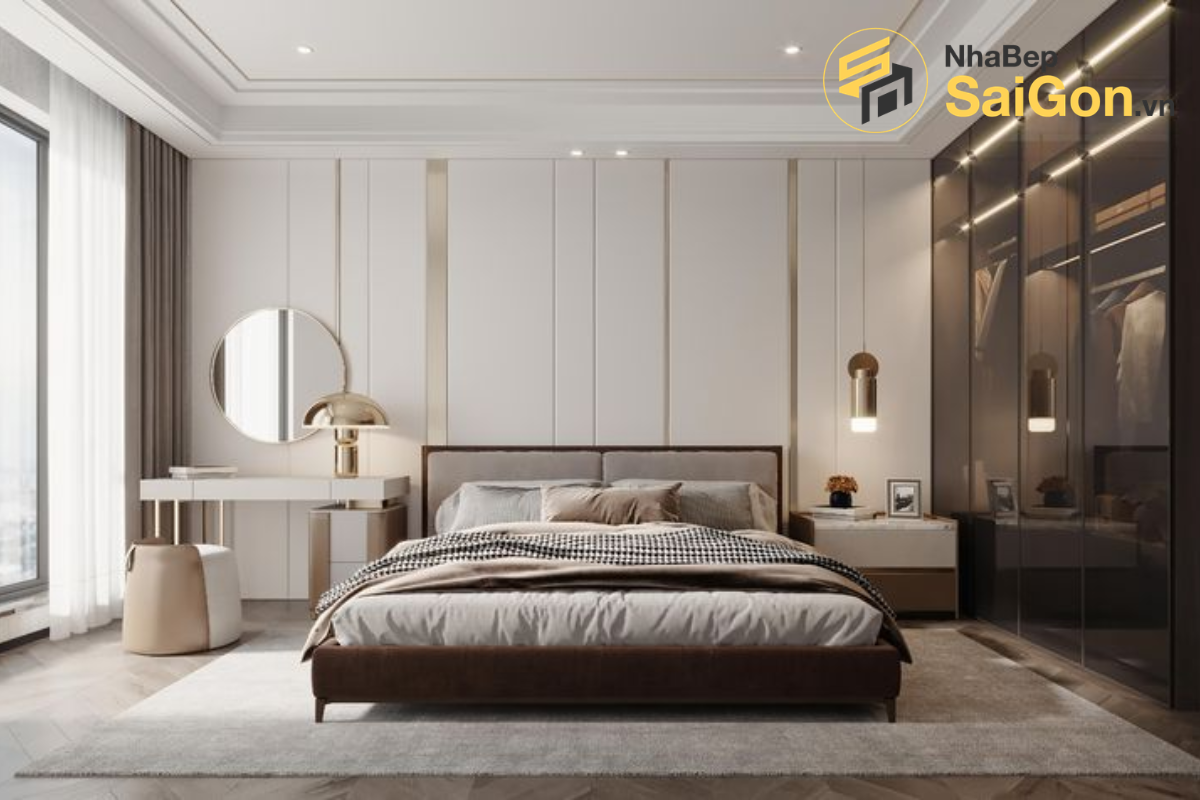 Gương soi là một yếu tố quan trọng giúp mở rộng không gian, tạo cảm giác thoáng đãng và là vật dụng không thể thiếu trong phòng ngủ. Trong PN002, gương soi thường được tích hợp trên tủ quần áo hoặc bàn trang điểm, hoặc có thể là một chiếc gương đứng độc lập với thiết kế thanh lịch, góp phần hoàn thiện vẻ đẹp của căn phòng.