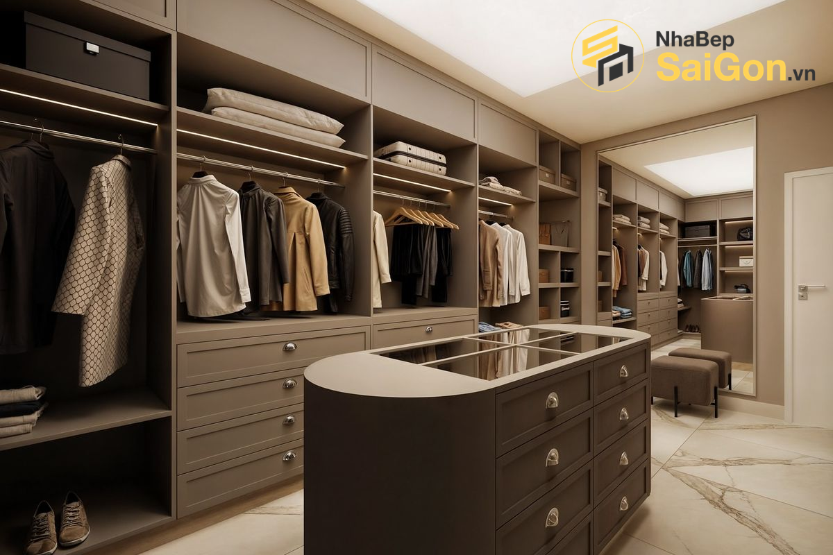 Phòng thay đồ PTD008 được thiết kế với triết lý tối giản, sang trọng, chú trọng vào công năng và sự hài hòa trong từng chi tiết. Sự kết hợp giữa vật liệu cao cấp, màu sắc trang nhã và cách bố trí thông minh tạo nên một không gian sống động, đẳng cấp và đầy cảm hứng.