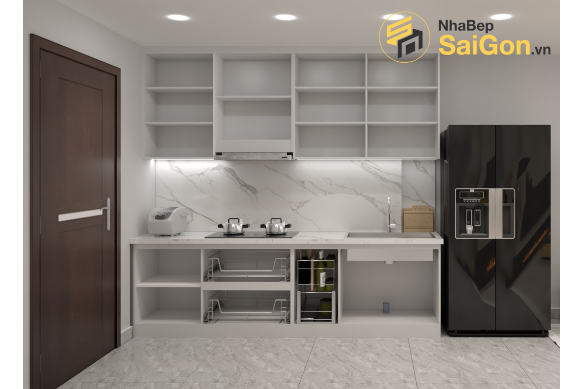 Tủ bếp chữ I – TBI006 đặc biệt phù hợp với những không gian đề cao sự tối giản và hiệu quả, mang lại cảm giác rộng rãi, sáng sủa hơn cho căn bếp mà vẫn đáp ứng đầy đủ nhu cầu sinh hoạt hằng ngày của gia đình.