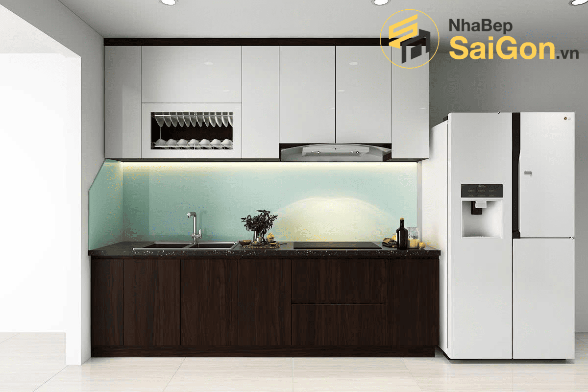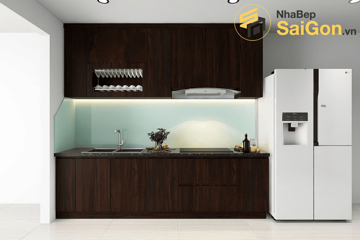 Đây là lựa chọn hoàn hảo cho các căn hộ có diện tích hạn chế, nơi mỗi mét vuông đều quý giá. Thiết kế chữ I giúp tận dụng tối đa chiều dài bức tường, tạo ra một khu vực nấu nướng và lưu trữ đầy đủ chức năng mà không chiếm nhiều diện tích sàn.