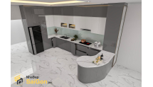 Điểm nổi bật của mẫu tủ bếp chữ U - TBU003 chính là khu vực đảo bếp bo cong mềm mại, vừa đóng vai trò như một bàn chuẩn bị thực phẩm, vừa có thể tận dụng làm quầy bar mini hoặc khu vực bày trí món ăn. Thiết kế này giúp không gian bếp trở nên hiện đại, tiện nghi và mang tính kết nối cao với các khu vực sinh hoạt khác trong nhà.