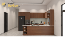Mặt bếp được thiết kế rộng rãi với vật liệu bền đẹp, dễ vệ sinh, đáp ứng tốt nhu cầu nấu nướng của gia đình. Các thiết bị bếp như bồn rửa, bếp nấu và tủ lạnh được bố trí hợp lý theo nguyên tắc tam giác bếp, giúp tối ưu thao tác và tiết kiệm thời gian di chuyển khi sử dụng.